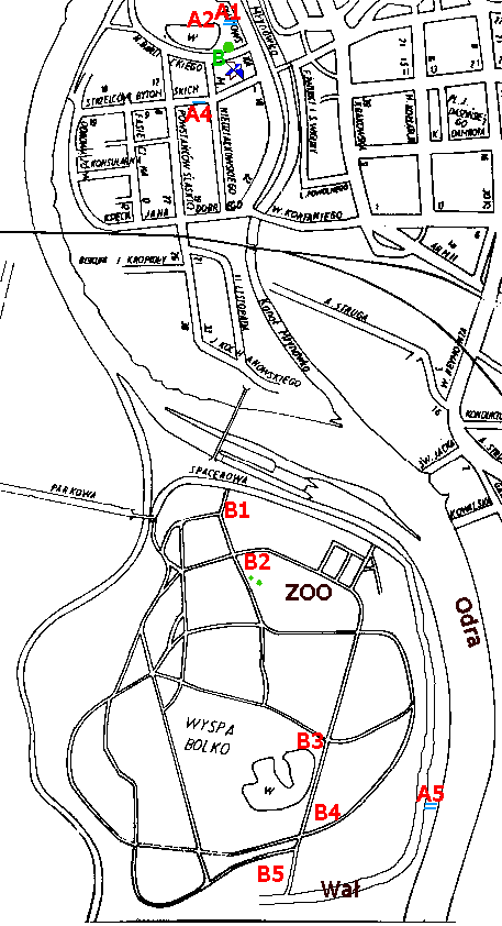 B1, B2, B3, B4, B5 – stanowiska przyrodnicze dla grupy IB,